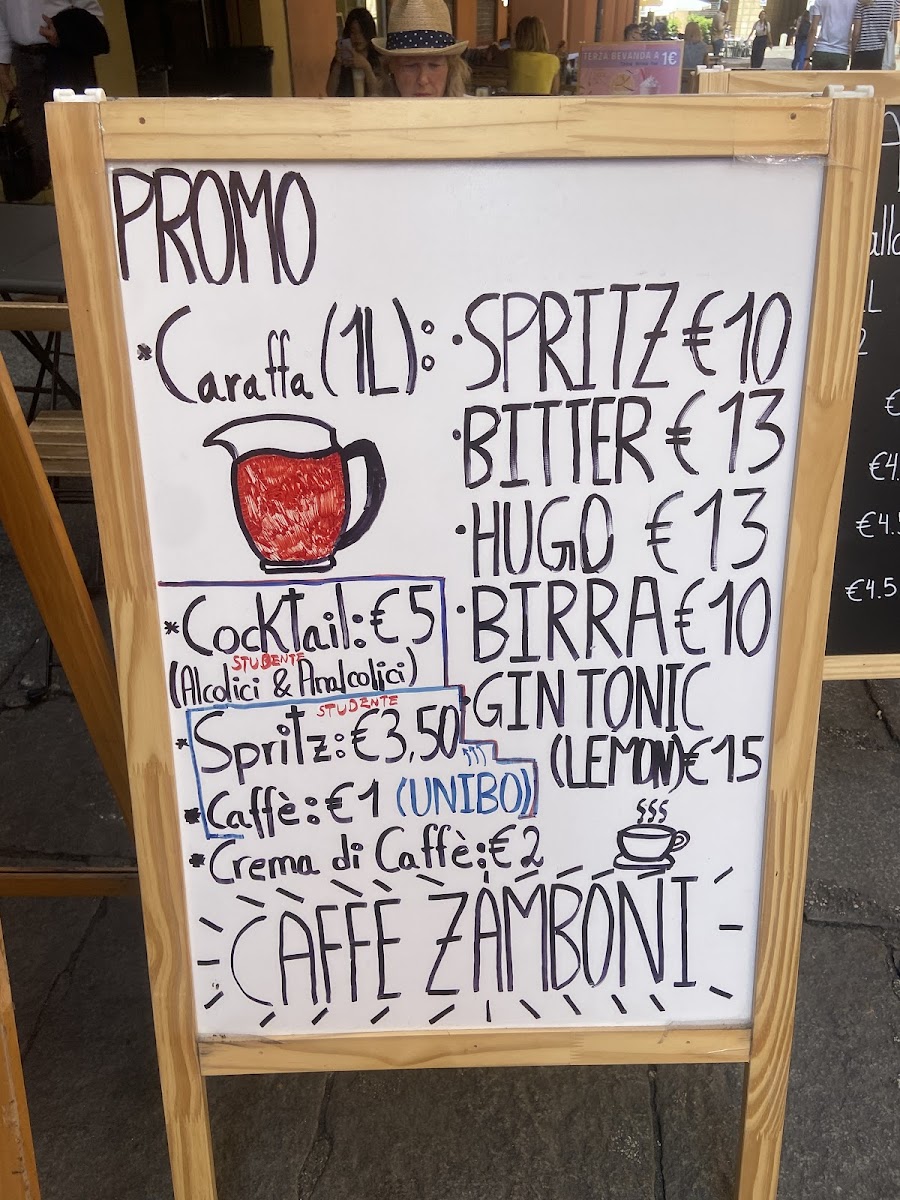 The menu at Caffè Zamboni offers a diverse selection of food and beverages suited for various dining occasions, from casual coffee breaks to light meals and more substantial buffet options. Located in the heart of Bologna, the menu includes a range of coffee specialties, cocktails, and alcoholic drinks such as Aperol Spritz and Prosecco, catering to those seeking both non-alcoholic and alcoholic refreshments.